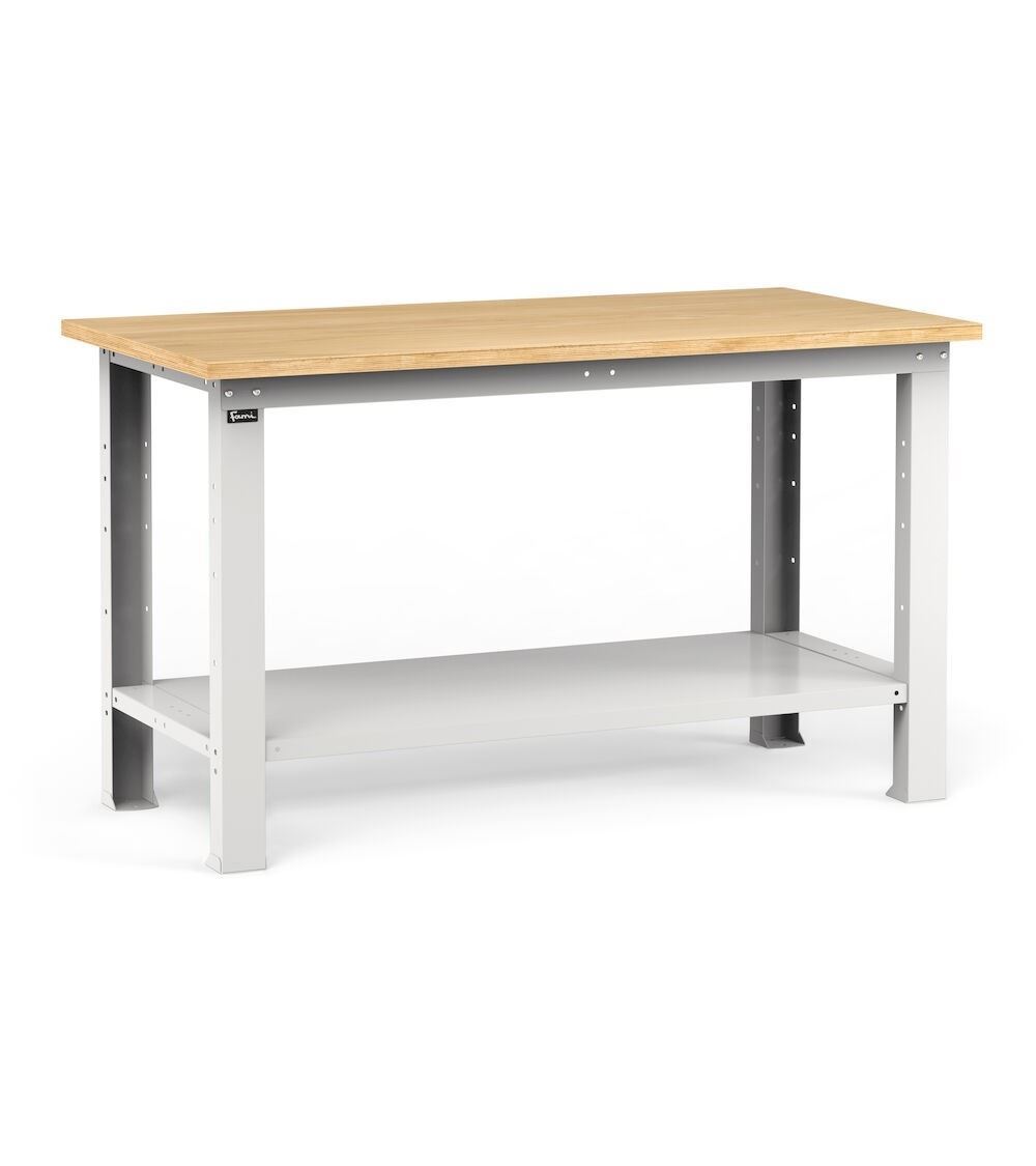 Il banco con piano in multiplex è una soluzione ideale per effettuare operazioni pesanti. La postazione di lavoro può essere trasformata nel tempo a seconda delle necessità dell'utilizzatore: possono essere aggiunti sistemi per l'organizzazione di utensili ed attrezzatura come armadi a cassetti o con porta e pareti attrezzate.